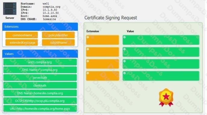 Drag the various data points to the correct locations within the CSR. Extension criteria belong in the left-hand column and values belong in the corresponding row in the right-hand column.