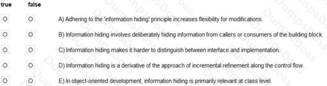 Which of the following statements regarding the design principle ‘information hiding’ are true and which are false? (Assign all answers.)