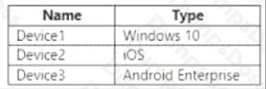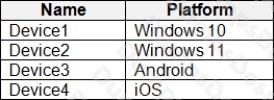 You have a Microsoft 365 subscription that contains the devices shown in the following table.