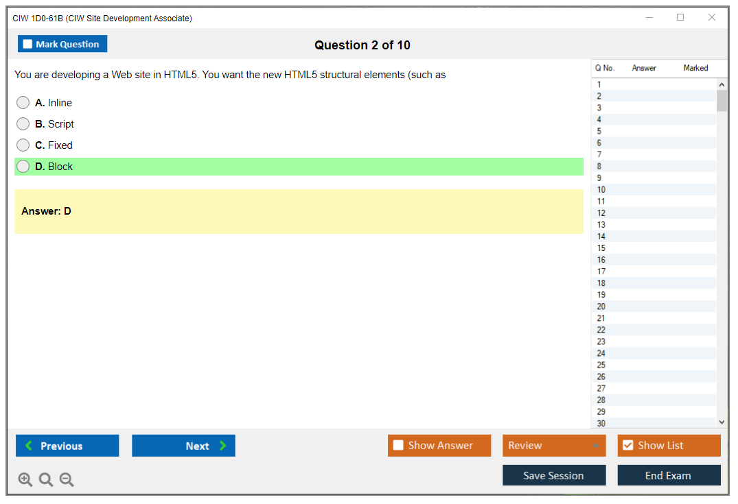 The CIW 1D0-61B Exam consists of 30 questions.