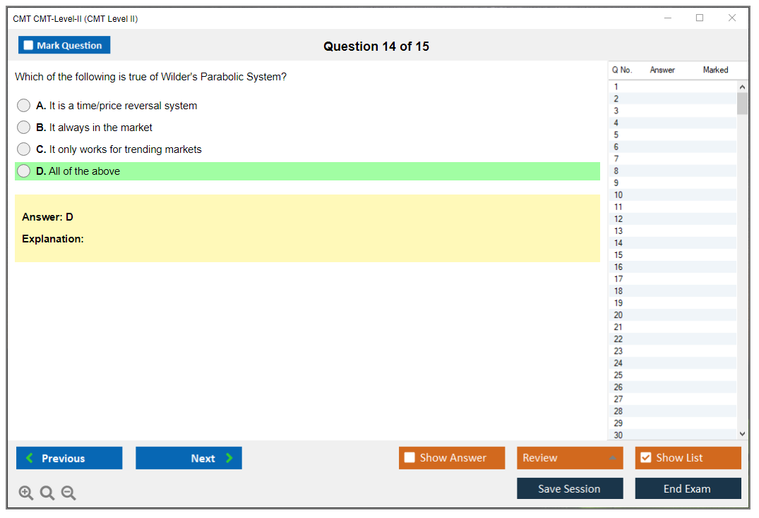 What are the Sample Questions of CMT CMT-Level-II Exam?