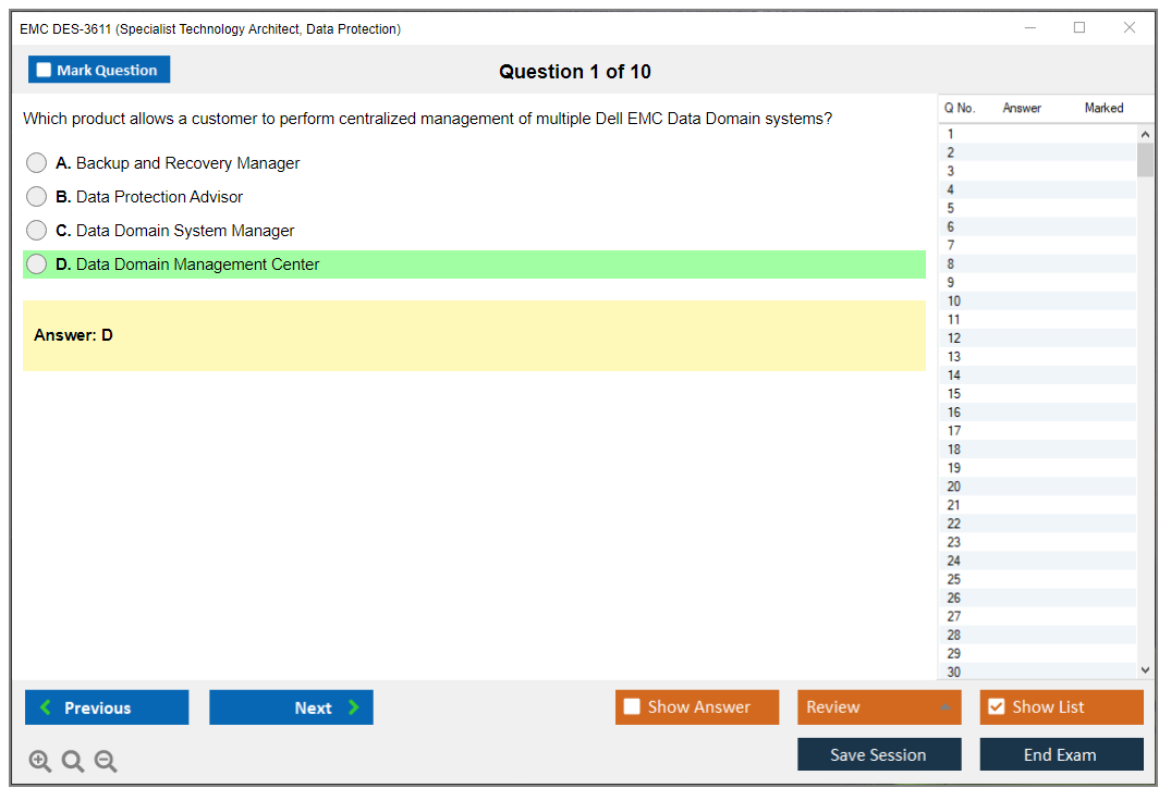 The EMC DES-3611 (Specialist Technology Architect, Data Protection) Exam is designed to validate the knowledge and skills required to design and architect data protection solutions using Dell EMC technologies.