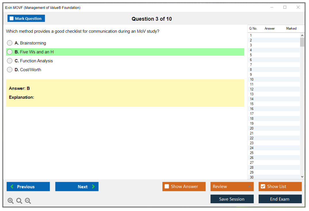 The Exin MOVF (Management of Value® Foundation) Exam is designed to provide individuals with the knowledge and skills to maximize value within an organization by implementing value management principles. It focuses on the concepts and methodologies used to enhance value in projects, portfolios, and programs.