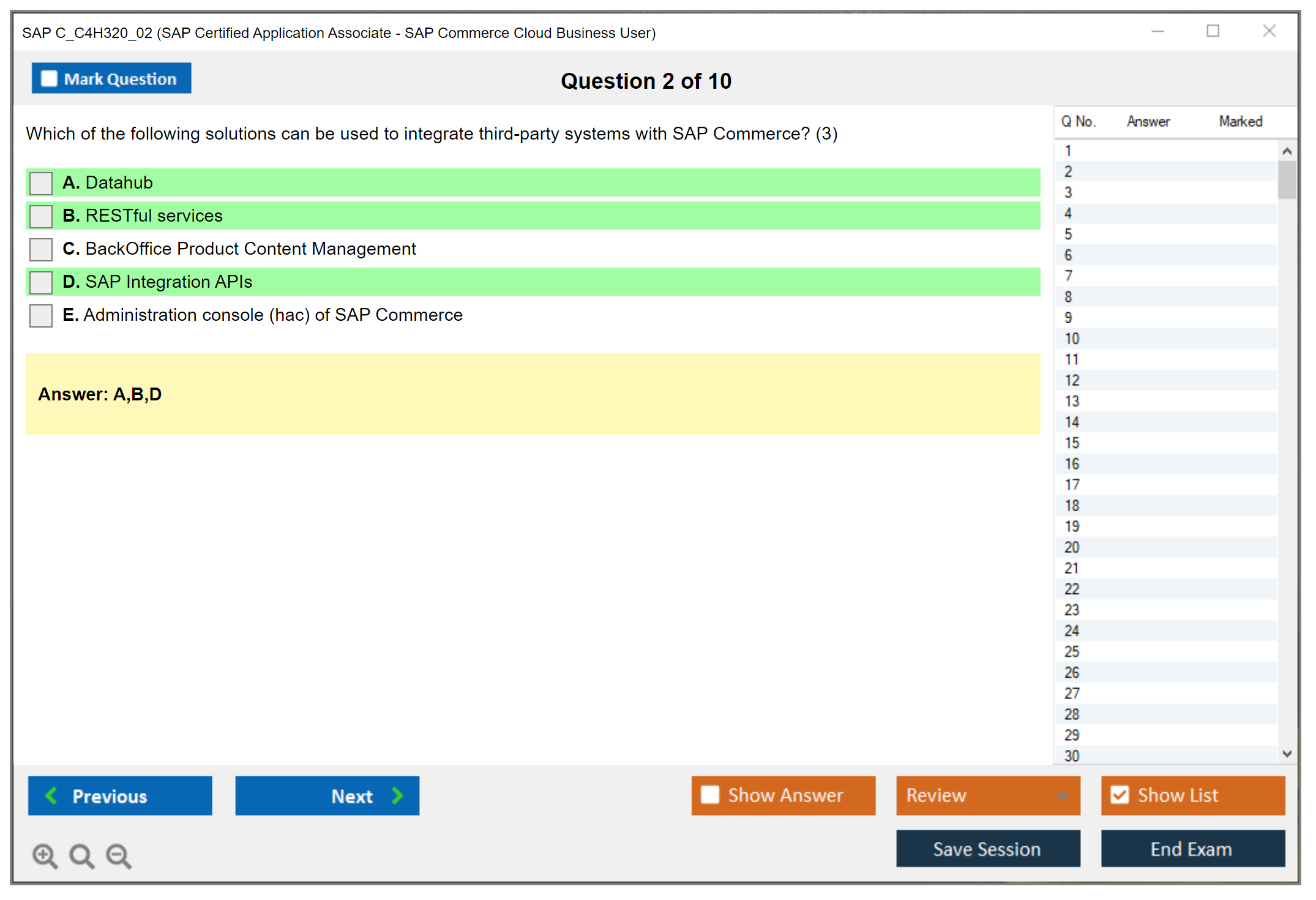 The SAP C_C4H320_02 (SAP Certified Application Associate - SAP Commerce Cloud Business User) exam is designed to assess the candidate's knowledge and skills in SAP Commerce Cloud. It covers various aspects such as business processes, data modeling, and integration with other SAP solutions.