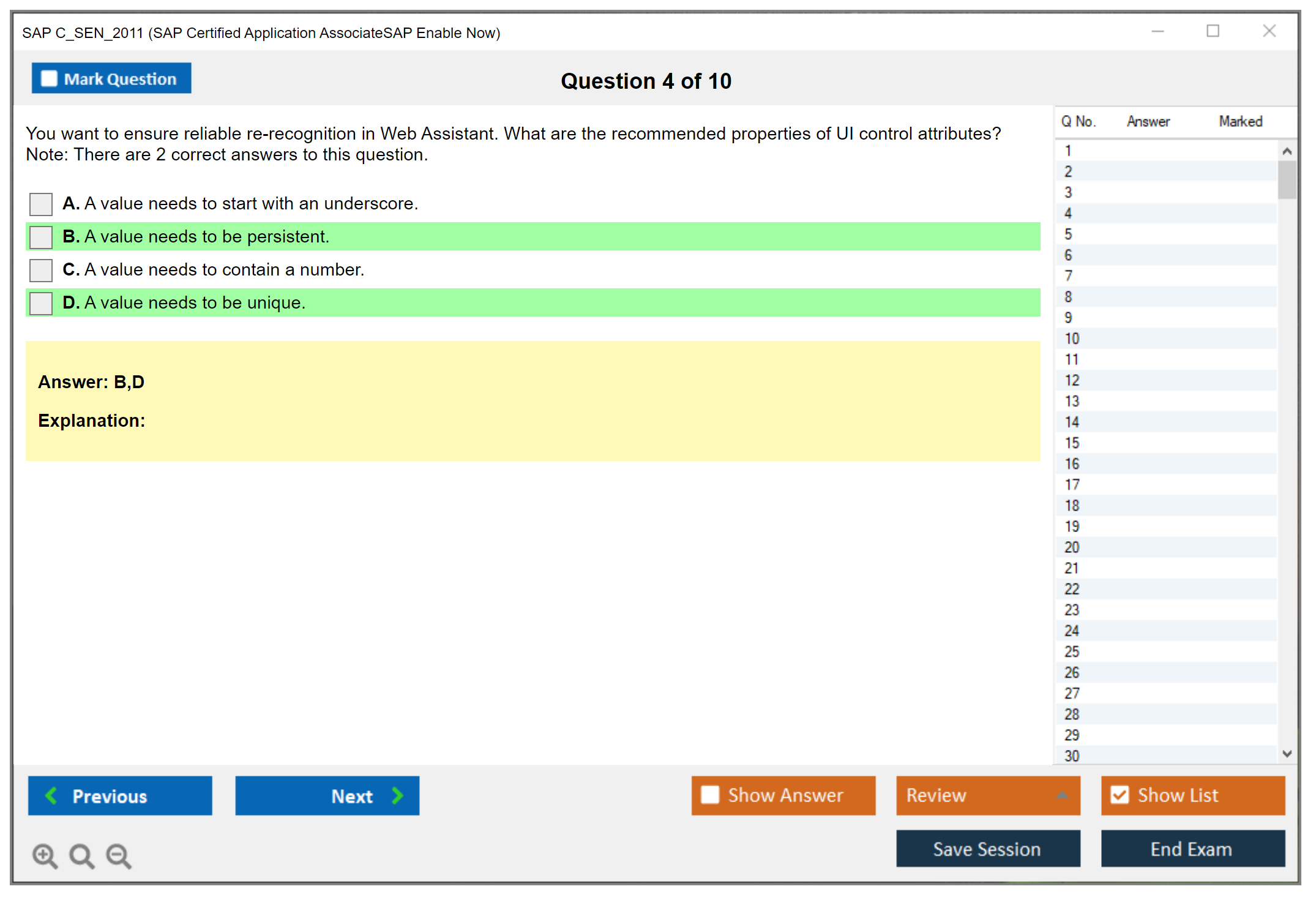 Note: SAP C_SEN_2011 (SAP Certified Application AssociateSAP Enable Now) will not receive any new updates.