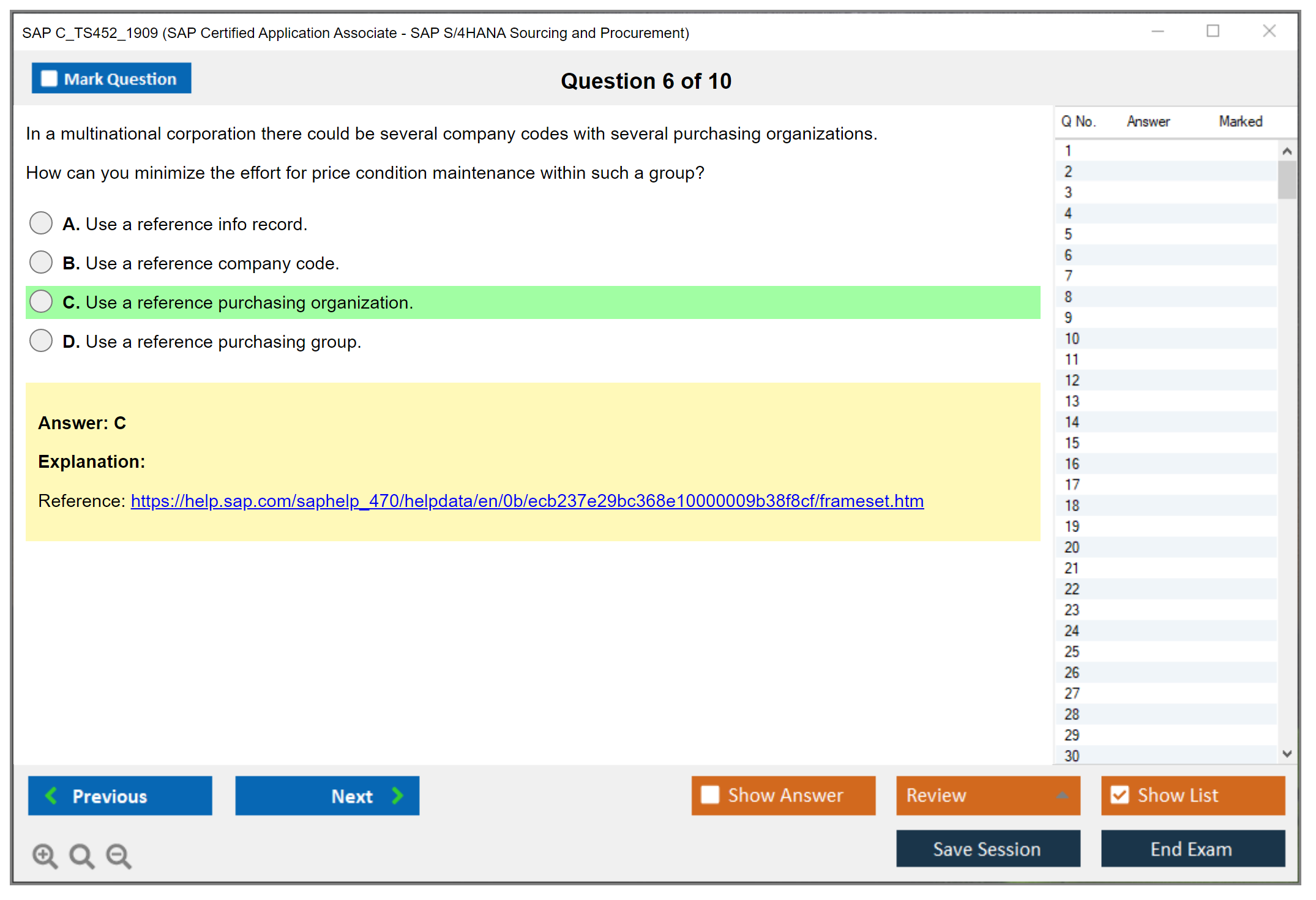 Note: SAP C_TS452_1909 (SAP Certified Application Associate - SAP S/4HANA Sourcing and Procurement) will not receive any new updates.