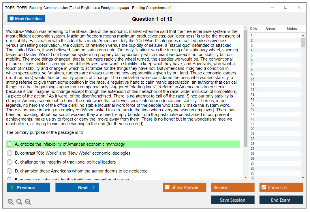 TOEFL-Reading-Comprehension (Test of English as a Foreign Language - Reading Comprehension) PDF + Test Engine