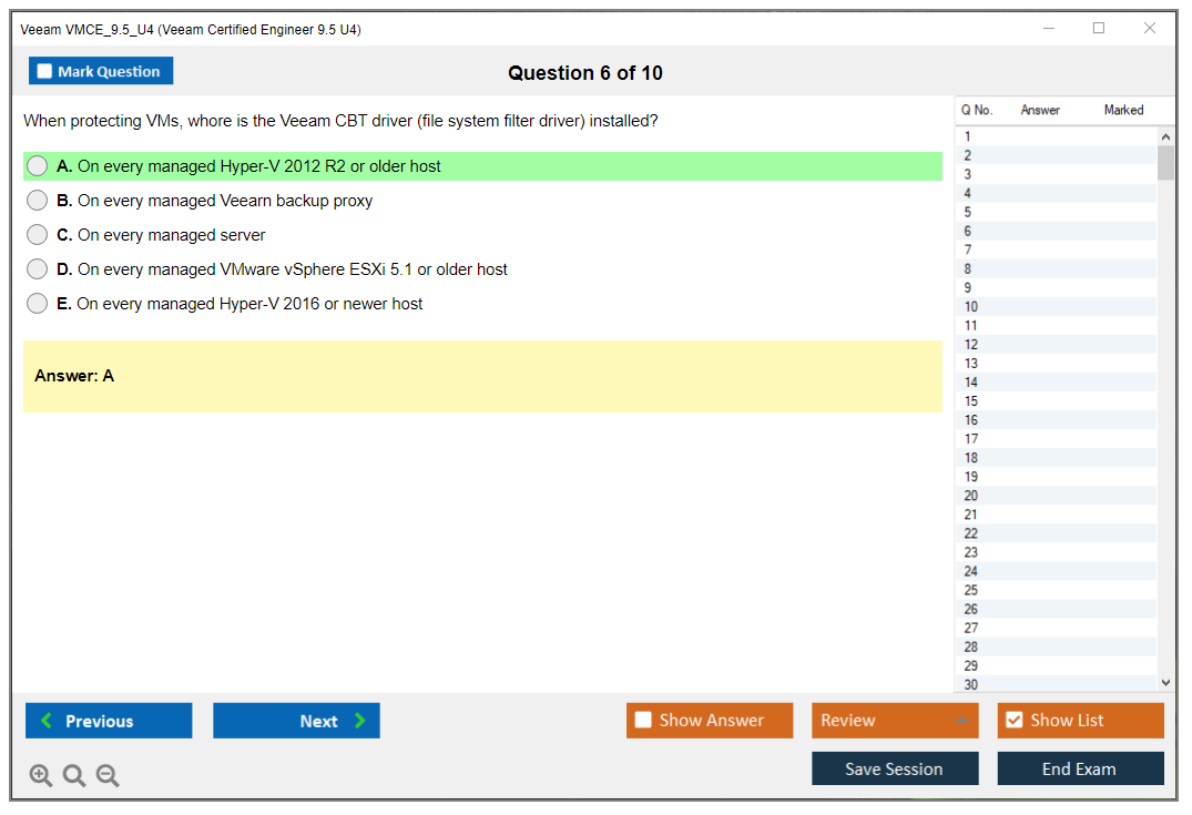 The Veeam VMCE_9.5_U4 (Veeam Certified Engineer 9.5 U4) Exam is a certification test designed to validate the skills and knowledge of IT professionals in using Veeam's backup, recovery, and replication software. It focuses on the 9.5 Update 4 version of Veeam's software.